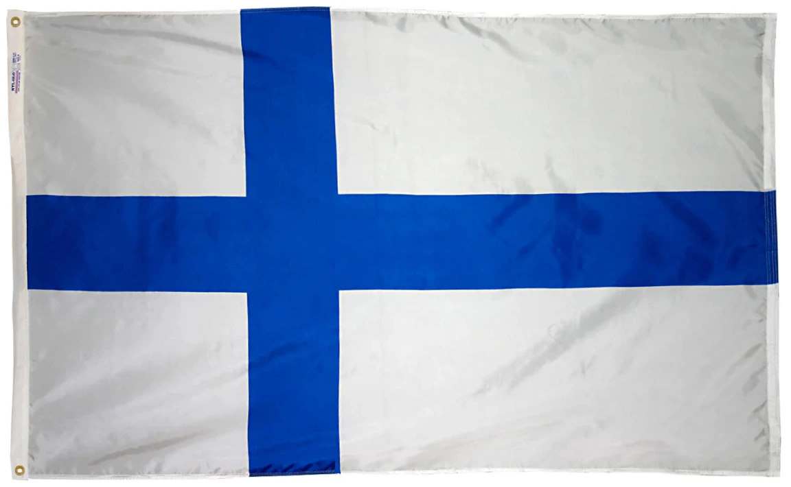 - Our Finnish nylon flags are made with 100% heavyweight 200 denier nylon bunting and are 100% dye printed with the image on both sides.